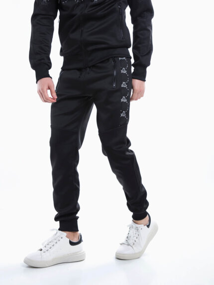 Calças jogger pretas com estampado