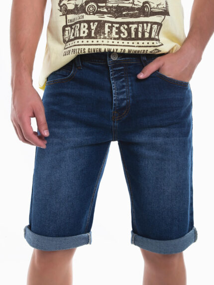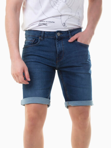 Calções ganga azul escuro slim fit