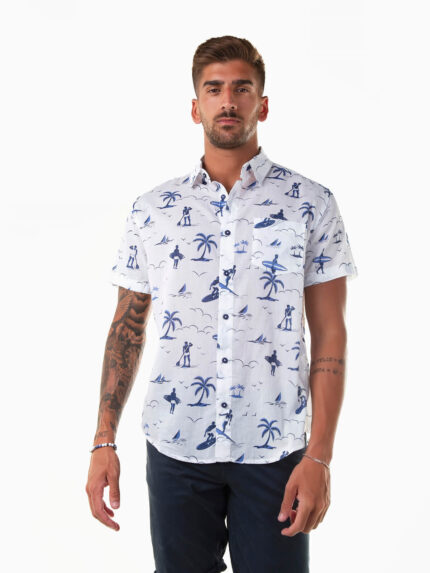 Camisa manga curta com palmeiras