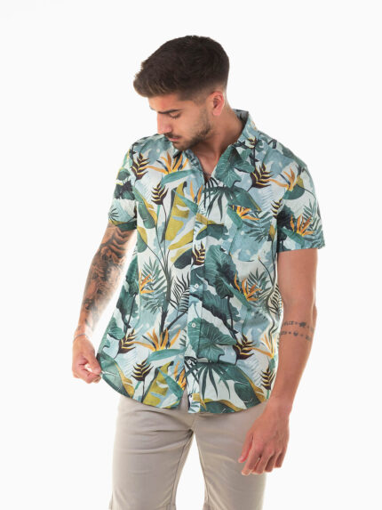 Camisa manga curta com folhas
