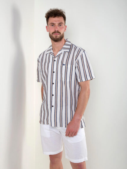 Camisa manga curta riscas com textura