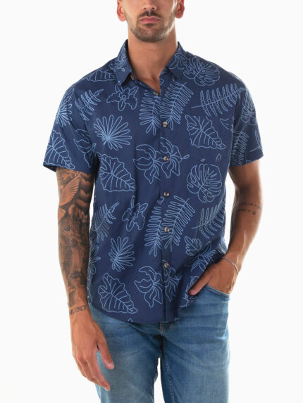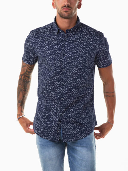 Camisa azul marinho estampada