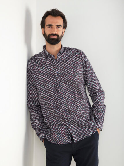 Camisa azul marinho com padrão