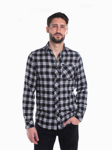Camisa flanela xadrez cinza escuro