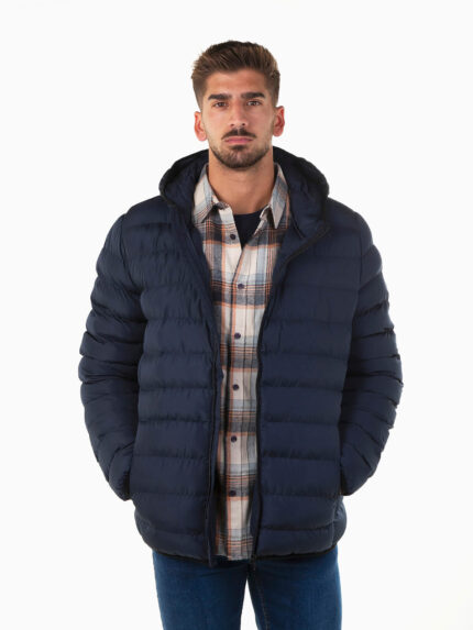 Blusão acolchoado azul marinho com capuz