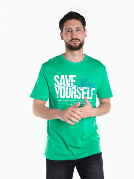 T-shirt manga curta com mensagem