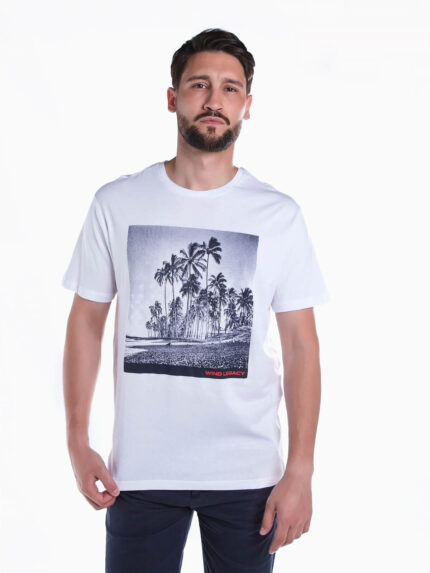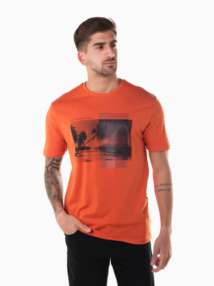 T-shirt manga curta com paisagem