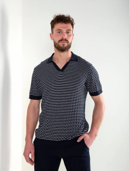 Polo azul marinho às riscas