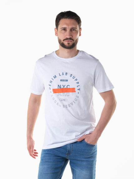 T-shirt branca manga curta estampada