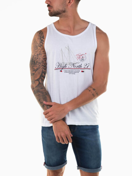 T-shirt branca sem mangas ‘Surfcoach’