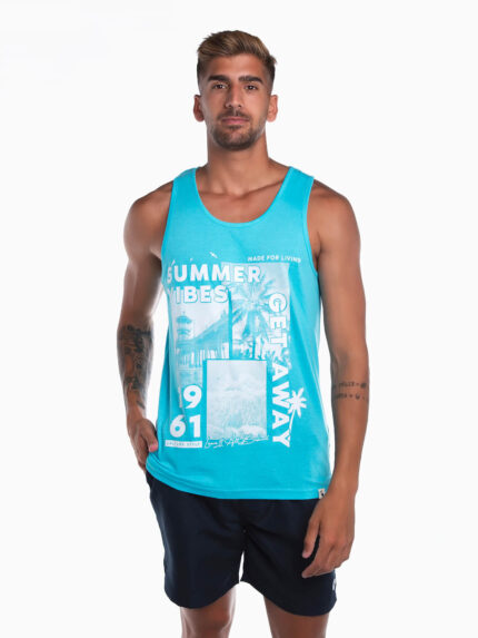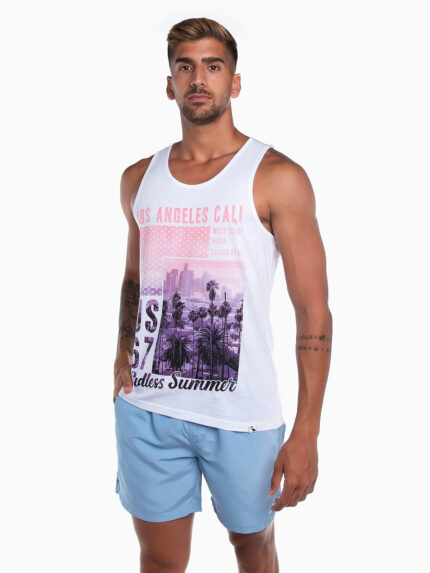 T-shirt estampada sem mangas