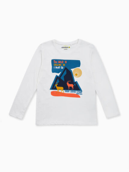 T-shirt manga comprida estampado montanha