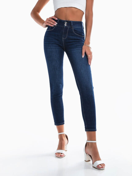 Calças ganga push-up com botões