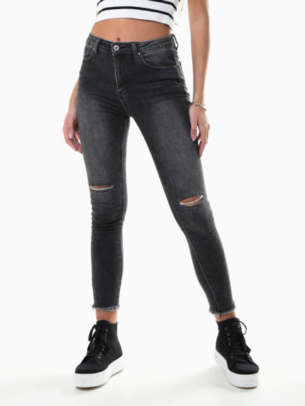 Skinny jeans pretas com rasgos
