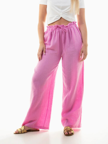 Calças fluídas cintura franzida