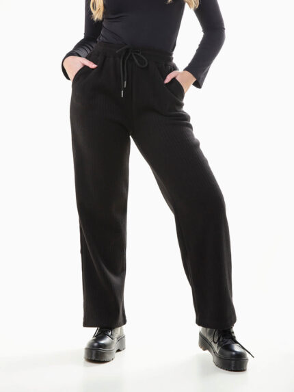 Calças largas malha canelada interior cardado