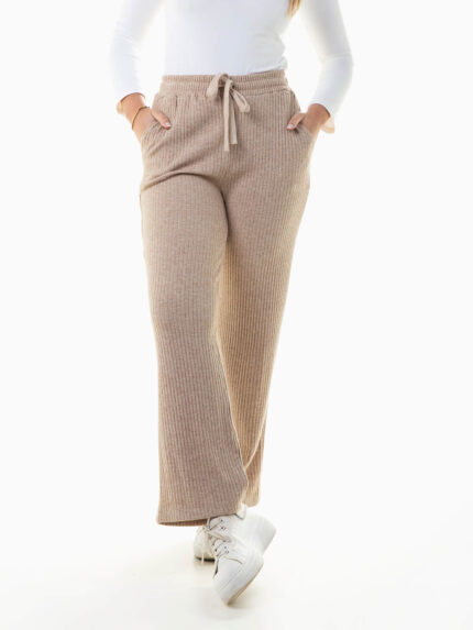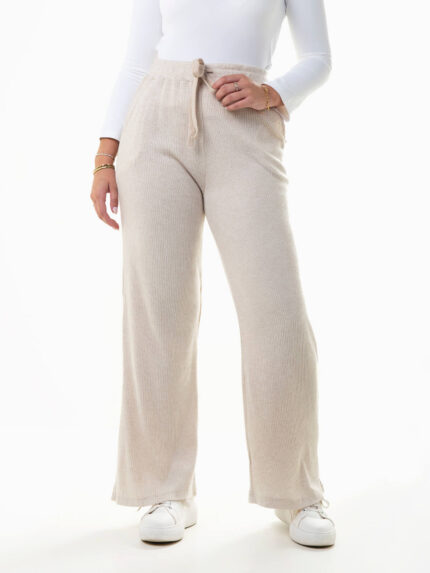 Calças largas malha canelada
