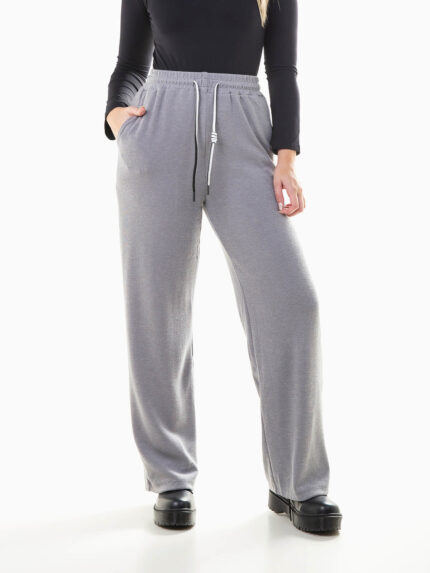 Calças largas malha canelada mesclada