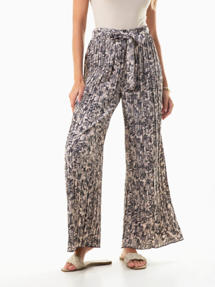 Calças largas plissadas com estampado
