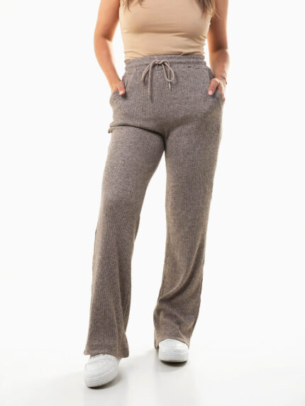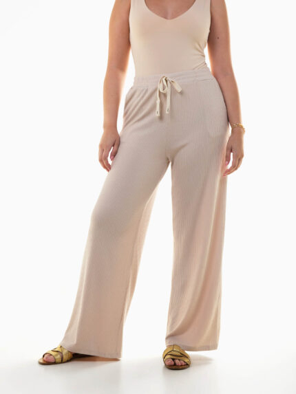Calças malha canelada largas