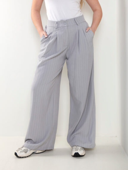 Calças wide leg riscas diplomáticas