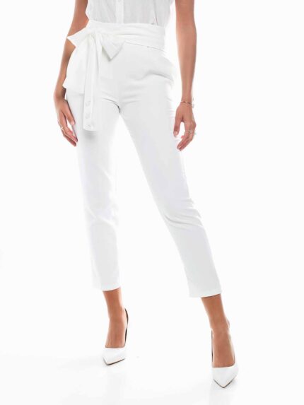 Calças cintura paperbag com laço