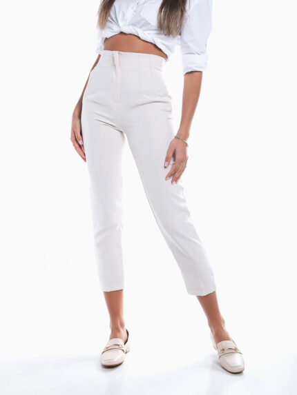 Calças clássicas bege com botões