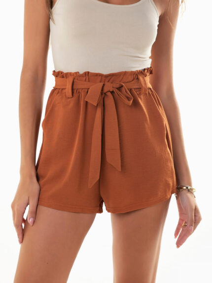 Calções curtos paperbag com cinto