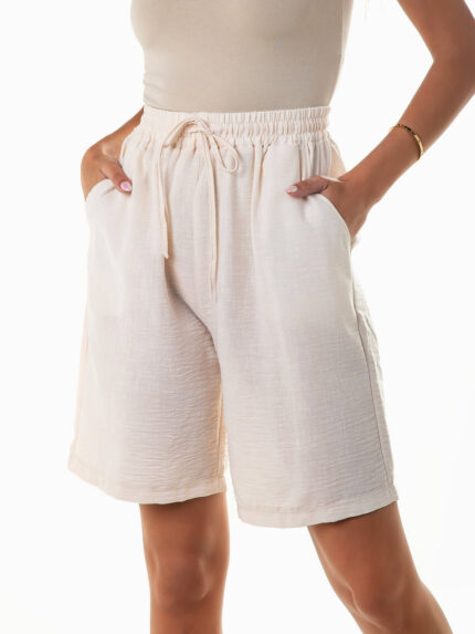 Calções bermuda aparência linho