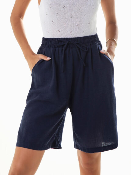 Calções bermuda fluídos aparência linho