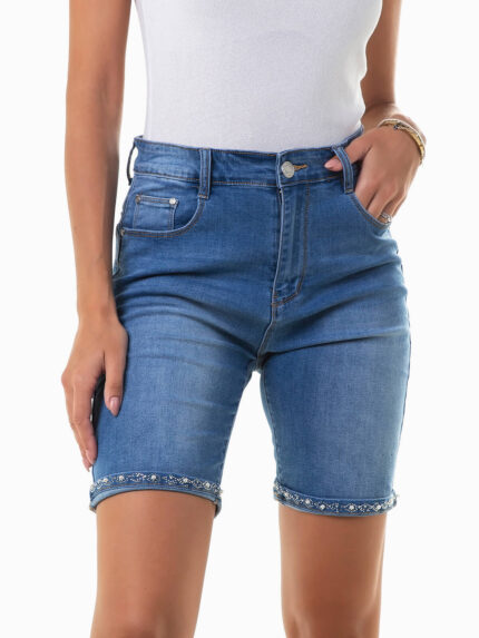 Calções bermuda ganga com aplicações