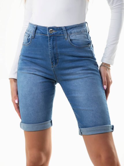 Calções bermuda ganga cintura baixa