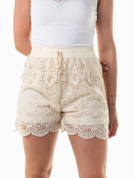 Calções curtos crochet com cordão