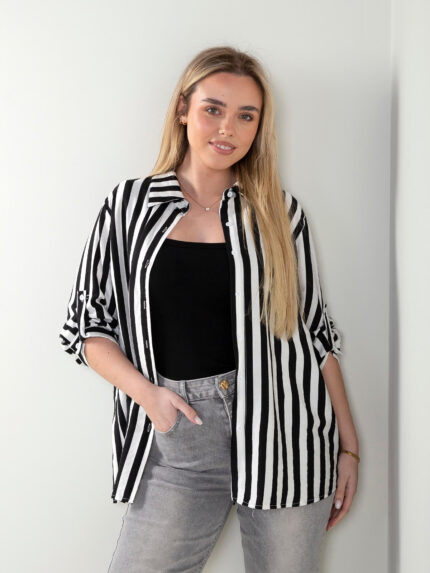 Camisa às riscas com strass