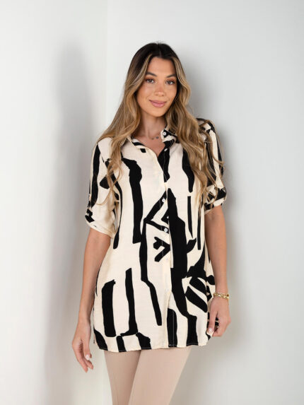 Camisa comprida estampada manga 3/4