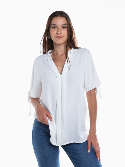 Blusa fluída manga curta em V