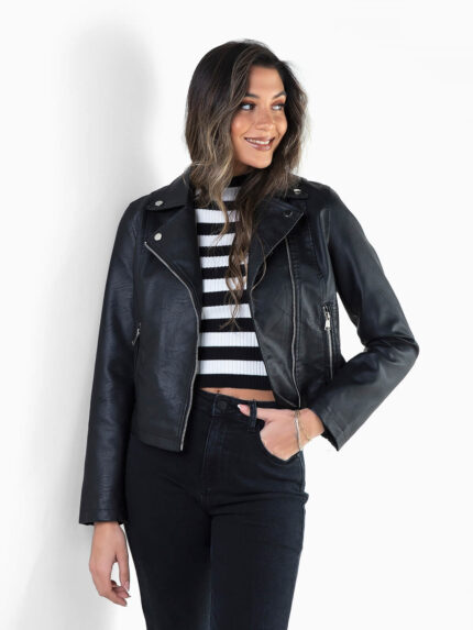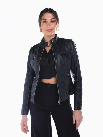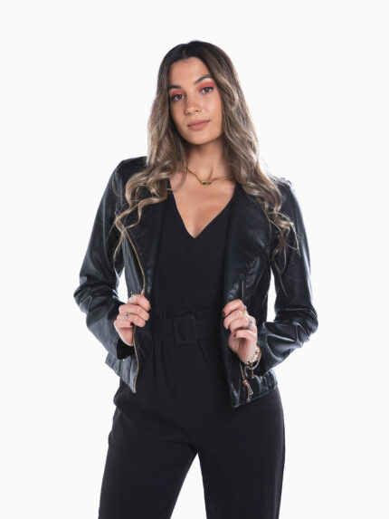 Blusão biker preto efeito pele