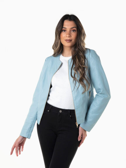 Blusão biker decote redondo