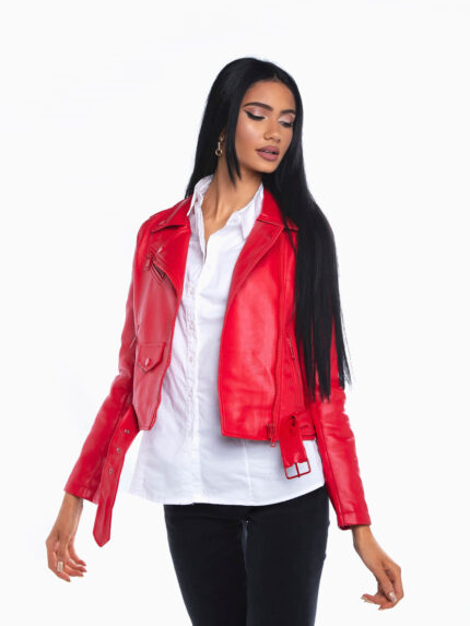 Blusão biker efeito pele com cinto