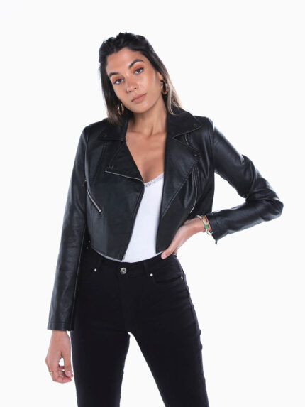 Blusão biker cropped
