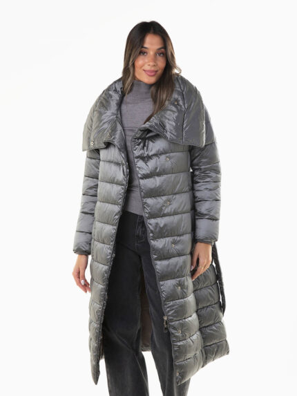 Blusão comprido acolchoado com cinto