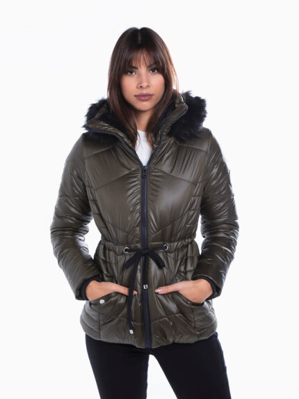 Blusão cintado capuz com pelo