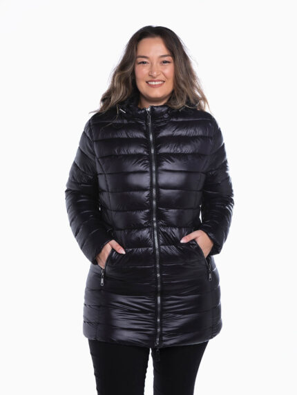 Blusão comprido acolchoado brilhante