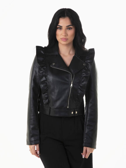 Blusão motard preto com folhos
