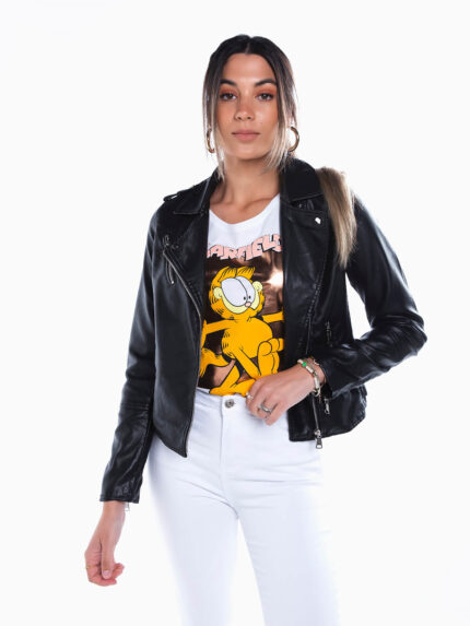 Blusão motard efeito pele