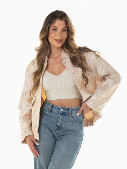 Casaco bege efeito pelo combinado
