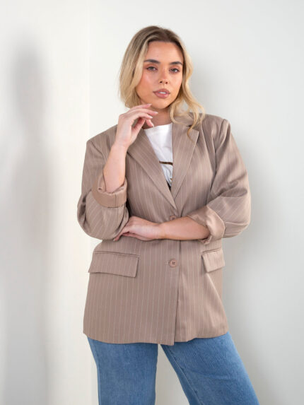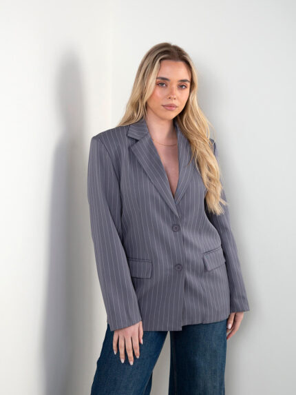 Blazer com riscas diplomáticas e cinto