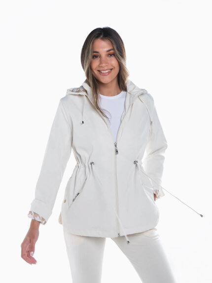 Parka impermeável cintada com capuz