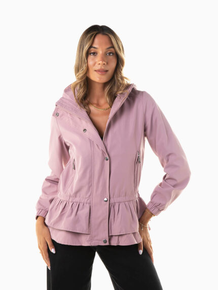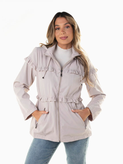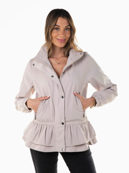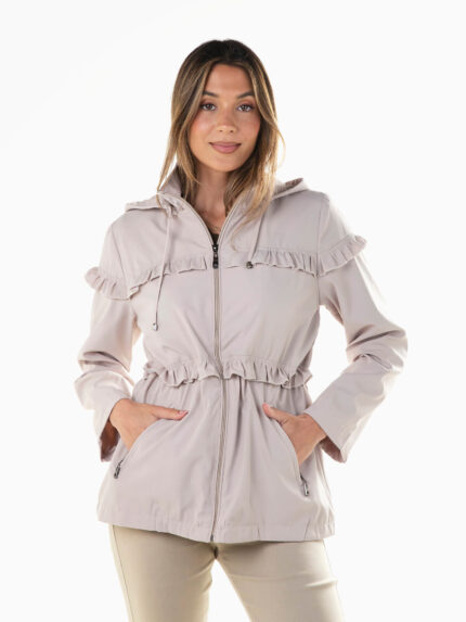 Parka com capuz e folhos
