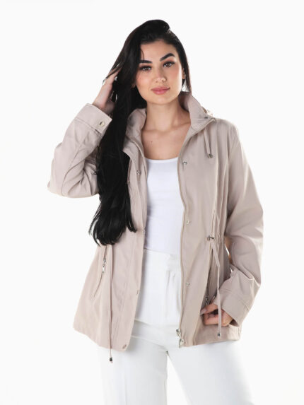 Parka com capuz cintura franzida